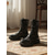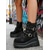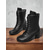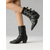 Botas moteras negras con tachuelas y hebillas para mujer, botines estilo punk rock, calzado de moda para looks casuales y de estilo urbano.