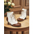 Botas de invierno de ante marrón para mujer con puños de piel sintética y cremallera lateral, elegante calzado urbano para climas fríos.