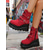 Botas de combate con purpurina roja para mujer: botines con cordones brillantes para mujer, ideales para Navidad, fiestas de invierno y salidas festivas.