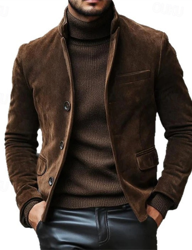 Hombre Chaqueta de ante marrón Exterior Ropa Cotidiana Templado Botón Bolsillo Otoño Invierno Plano Moda Retro Antiguo Escote Chino Regular Negro Azul Real Azul Piscina Morado Marrón Chaquetas