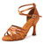Zapatos de baile latino con tiras en color tostado para mujer: sandalias de salón de tacón alto con punta abierta y correas elásticas para salsa, tango y presentaciones.