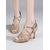 Zapatos de tacón de satén para baile latino de mujer: zapatos de salón de punta abierta con correa al tobillo, suela flexible de ante, elegante estilo dorado para fiestas. &eventos de baile formales