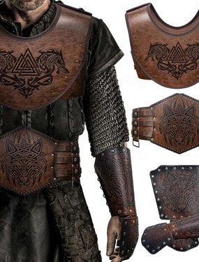 Retro Antiguo Medieval Renacimiento Armas y Armaduras Chaleco Guardia de pecho Caballero Vikingo élfico Disfraz Hombre Vikingo Fantasía Víspera de Todos los Santos Carnaval Mascarada Fiesta Feria del