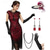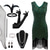 Rugido 20s 1920s Hasta el Suelo Hasta la Rodilla Vestidos Vestido de noche Accesorios Mangas cortas El gran Gatsby charlestón Invitado a la boda Lentejuelas Borlas Pluma Escote en Pico Disfraz Mujer
