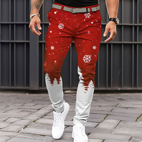 Navidad Hombre Copo pantalones de traje Media cintura Casual Ropa de fiesta de noche Uso Diario Festivos Cremallera Bolsillo Verano Primavera Otoño Impresión 3D Negro Rojo Azul Piscina