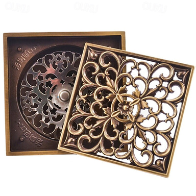 Drenaje de piso de ducha de 4 pulgadas cuadrado tradicional 100 x 100 mm, latón antiguo desagüe de baño de latón extraíble rejilla de inserción de saneamiento, colador de cabello