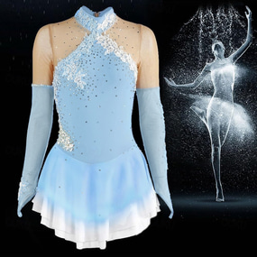 Vestido de patinaje artístico Mujer Chica Patinaje Sobre Hielo Vestidos Azul Elástico Entrenamiento Competición Ropa de Patinaje Mantiene abrigado Cristal / Strass Manga Larga Patinaje sobre hielo