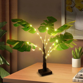 lámpara de escritorio de hoja de palma tropical, usb & alimentado por batería para el dormitorio & exterior, control por pulsador, decoración de fiesta hawaiana - pilas no incluidas