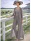 Traje de pantalón Hasta el Tobillo Vestido de Madrina Media Manga Camiseta con cuello redondo Elegante Formal Invitado a la boda Gasa Lentejuelas con Lazo(s) Lentejuela