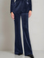 Chaqueta de imitación de cuero para mujer pantalón de traje corte recto formal invitada de boda formal de noche con lentejuelas a rayas elegante simple de longitud hasta el tobillo