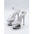 Tacones de plataforma con punta abierta plateados para mujer con patrón sutil: tacones de aguja altos y atrevidos para cócteles y eventos nocturnos.