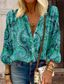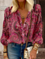 Camisa de mujer de manga larga blusa abotonada moda casual paisley botones print tops regulares cuello de camisa casual diaria para salir rosa rojo verde primavera y otoño