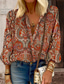 Mujer Camiseta Estampado Floral Tribal Moda Moderno Manga Larga Cuello Barco Tops regulares Diario Naranja Marrón Gris Verano