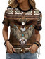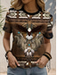Camiseta boho para mujer camiseta occidental gráfico geométrico tribal bohemio vintage elegante manga corta cuello redondo tops regulares diario salir fin de semana impresión marrón verano primavera