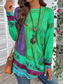 Mujer Sayo Camiseta Estampado Graphic Vintage Túnicas Étnico Manga Larga Escote Redondo Tops regulares Festivos Fin de semana Azul Piscina Granate Verde Trébol Gris Otoño invierno