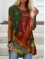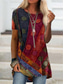 Camiseta de mujer vintage étnica casual estampado manga corta tops regulares vacaciones marrón verano