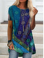 Mujer Camiseta Retazos Estampado Floral Graphic Mandala Básico Manga Corta Escote Redondo Tops regulares Diario Fin de semana Azul Piscina Negro Amarillo Morado Verde Trébol Primavera, Otoño