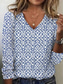 Camiseta de mujer V cuello T manga larga túnica gráfica moda moderna casual regular tops impresión diaria fin de semana azul otoño invierno