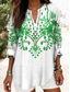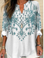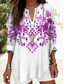 Mujer Camiseta Henley Shirt Botones Estampado Floral Cosecha Étnico Diario Básico Manga 3/4 Escote en Pico Tops regulares Festivos Fin de semana Rojo Morado Verde Trébol Caqui Gris Otoño invierno
