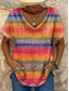 Mujer Camiseta Estampado Graphic Geométrico Bloque de color Elegante Casual Manga Corta Escote en Pico Tops regulares Diario Fin de semana Arco Iris Verano Primavera