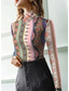 Túnica de camiseta de mujer elegante bohemia vintage de manga larga tops regulares cuello alto de vacaciones para salir roja otoño invierno antes de otoño