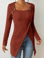 Mujer Camiseta Camiseta superior Botones Asimétrico Color sólido Elegante Moda Manga Larga Escote Cuadrado Tops regulares Diario Fin de semana Negro Marrón Rosa Brillante Gris Primavera Otoño
