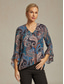 Mujer camisa boho Blusa Volante Cachemir Vintage Elegante Casual Manga Larga Escote en Pico Tops regulares Diario Trabajo Invitado a la boda Azul Marino Verano Primavera Otoño