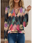Camiseta de Mujer T-Shirt de Cuello Cuarto con Cierre de Manga Larga Casual Gráfico Tribal Vintage Bohemio Tropical Hawaiano de Cuello en V Tops Regulares Diarios Salida Negra Primavera Otoño