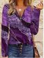 Camiseta de Mujer T-Shirt de Cuello Cuarto con Cierre de Manga Larga Casual Gráfico de Cuello en V Tops Regulares Diarios Rosa Rojo Azul Púrpura Verde Primavera Otoño