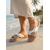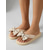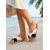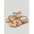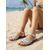 Sandalias planas beige para mujer con suela de veta de madera: zapatos informales con punta abierta y cortes para vacaciones en la playa y resorts.