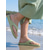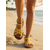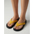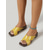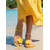 Sandalia amarilla para mujer: un modelo plano y vibrante para vacaciones de verano en la playa o en resorts isleños. &vacaciones tropicales