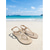 Sandalias de dedo doradas elegantes para mujer: chanclas planas minimalistas con tiras metálicas para vacaciones en la playa y centros turísticos de verano. &Relajación junto a la piscina