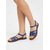 Sandalias planas multitira de mezclilla azul para mujer: estilo informal de isla tropical, cómodas sandalias con punta abierta para paseos por la playa y vacaciones de verano en resorts.