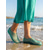 Sandalias bohemias con tiras en color verde azulado para mujer: elegantes sandalias planas con tiras trenzadas y detalles de joyas, cómodas sandalias de playa de verano para vacaciones tropicales.