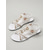 Sandalias blancas con tiras florales para mujer: elegantes sandalias planas con tiras en T y detalle de flores en 3D para resorts al aire libre y bodas en la playa. &vacaciones tropicales