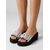 Sandalias de cuña negras para mujer: elegantes zapatos de plataforma veraniegos con adornos de perlas de imitación para vacaciones en la playa, fiestas en resorts y vacaciones tropicales.