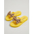 Chanclas amarillas vibrantes para mujer con detalle de lazo marrón, ideales para vacaciones en la playa, relajarse junto a la piscina y disfrutar del verano.