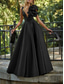 Corte A Cola de Corte Trajes de gala Vestidos de noche Corte Cenicienta Vestimenta formal Elegante Reluciente Manga Corta Hombros Caídos Gala de corbata negra Lentejuelas con Brillante Plisado