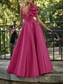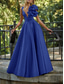 Corte A Hasta el Suelo Trajes de gala Vestidos de noche Corte Cenicienta Vestimenta formal Elegante Sin Mangas Un Hombro Boda Formal Satén con Volantes