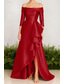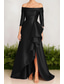 Corte Trompeta Sirena Cola barrida Vestidos de noche Elegante Media Manga Hombros Caídos Formal Satén con Lazo(s) Abertura