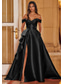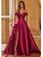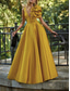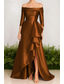 Vestido de Gala Cola de Corte Hasta el Suelo Trajes de gala Vestidos de noche Corte Cenicienta Vestimenta formal caliente Brillos Y Estrellas Manga 3/4 Hombros Caídos Pedida Recepción de Boda Satén