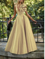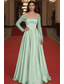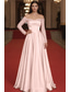 Vestido de Gala Hasta el Suelo Trajes de gala Vestidos de noche Corte Cenicienta Vestimenta formal Brillos Y Estrellas Manga Larga Escote en Pico Invitado a la boda Fiesta de Boda Bolsillo Satén con