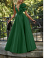 Corte A Cola de Corte Trajes de gala Vestidos de noche Corte Cenicienta Vestimenta formal Verde esmeralda Sensual Split High Manga Corta Un Hombro Fiesta de baile Invitado a la boda Organdí con
