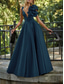 Corte A Hasta el Suelo Trajes de gala Vestidos de noche Corte Cenicienta Vestimenta formal Estilo de Celebridad Verde esmeralda Sensual Manga Corta Escote en Pico Fiesta de baile Invitado de boda de