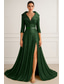 Corte Trompeta Sirena Hasta el Suelo Trajes de gala Vestidos de noche Corte Cenicienta Vestimenta formal Elegante Reluciente Estilo de Celebridad Manga Larga Escote en Pico Fiesta de jardin Boda