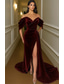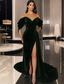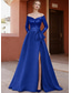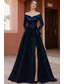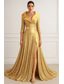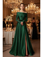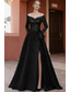 Corte A Cola barrida Trajes de gala Vestidos de noche Corte Cenicienta Vestimenta formal Vintage Sensual Split High Manga Larga Un Hombro Formal Invitado a la boda Satén con Pluma Abertura