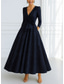 Corte A Hasta el Suelo Vestidos de noche Corte Cenicienta Vestimenta formal Elegante Bloque de Color Sedoso Manga Larga Escote en Pico Boda Formal Bolsillo Gasa Satén con Flor bordada