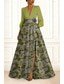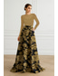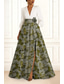 Corte A Hasta el Suelo Trajes de gala Vestidos de noche Corte Cenicienta Vestimenta formal Elegante Vintage Floral Manga Larga Escote en Pico Boda Formal Bolsillo Nailon con Estampado flor