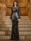 Funda Columna Hasta el Suelo Trajes de gala Vestidos de noche Corte Cenicienta Vestimenta formal Elegante Sedoso Manga Larga Cuello Alto Boda Formal Crepé elástico con Brillante Lentejuela