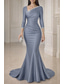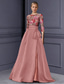 Funda Columna Hasta el Suelo Bordado con cuentas Vestido formal Vestido de madre de la novia Vestidos de noche Vestido de baile con sobrefalda Vestimenta formal Elegante Lentejuelas Sedoso Manga 3/4